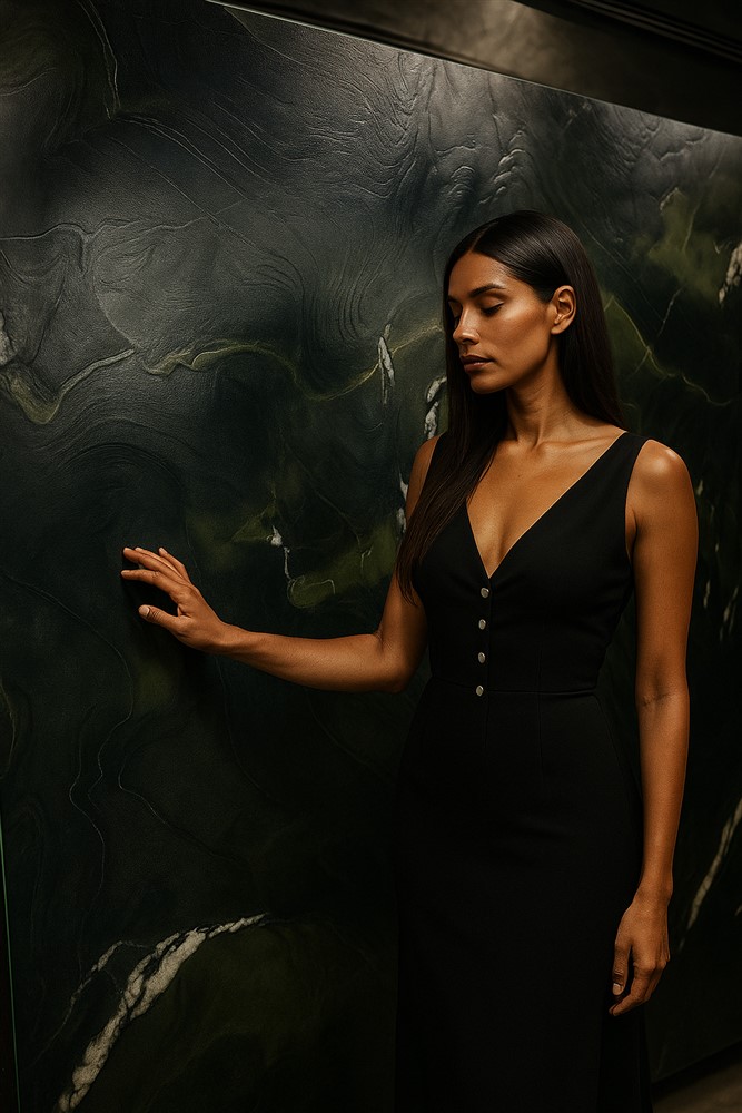 Avocatus Quartzite is a breathtaking natural stone that captures the raw, majestic beauty of untouched wilderness. With its swirling deep green hues, dark charcoal backgrounds, and striking white veining, this slab exudes a sense of drama and sophistication. The polished surface enhances its crystalline sheen, revealing rich mineral textures and subtle variations that make each piece truly one-of-a-kind.