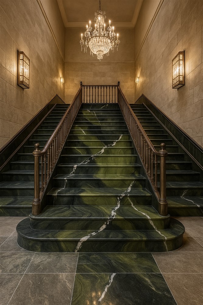 Premium exotic quartzite with deep forest green and dark charcoal waves