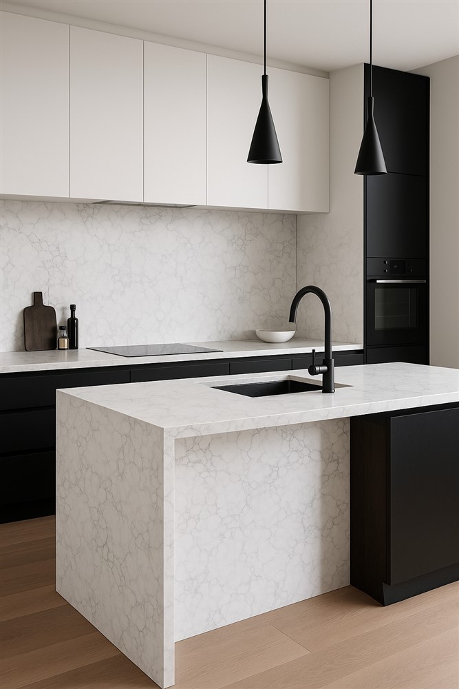 Crafted for high durability and low maintenance, Calacatta Gio Gray is ideal for daily-use areas such as kitchen countertops, bathroom vanities, tabletops, and vertical applications like backsplashes or wall cladding. It resists stains, scratches, and moisture while delivering consistent beauty that lasts. Whether for residential or commercial spaces, this quartz brings understated luxury and timeless appeal to every design.