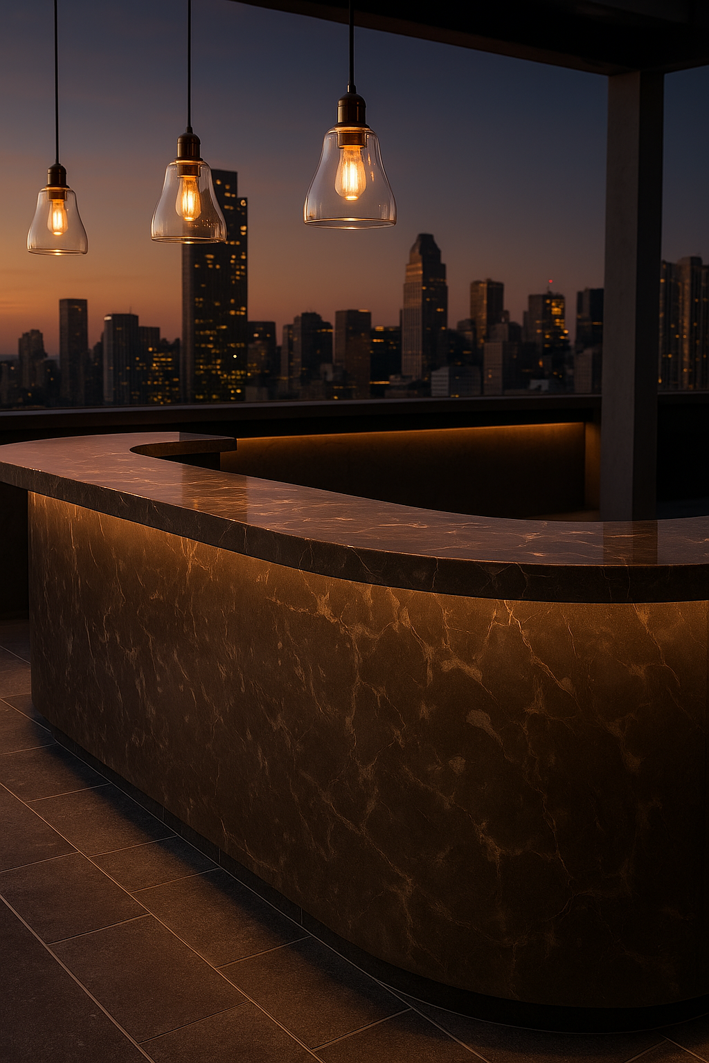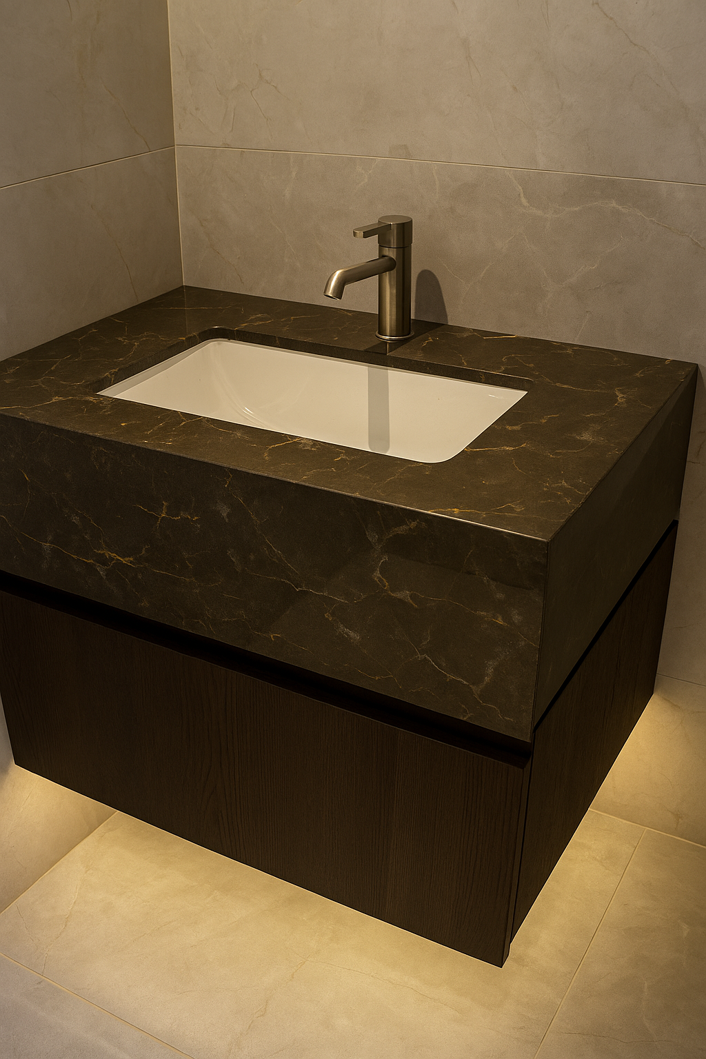 • Size & Thickness: Available in large format slabs (e.g. 1200×2400 mm or more), as well as cut-to-size tiles. Standard thicknesses around 20-30 mm for countertops; around 10-15 mm for wall/floor tiles.
