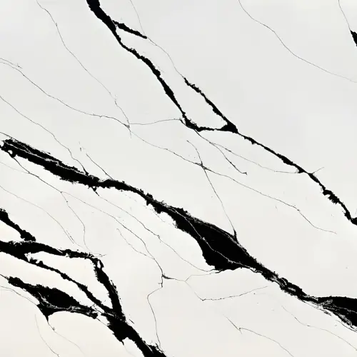 Crisp white surface dramatically intersected by bold black veining.