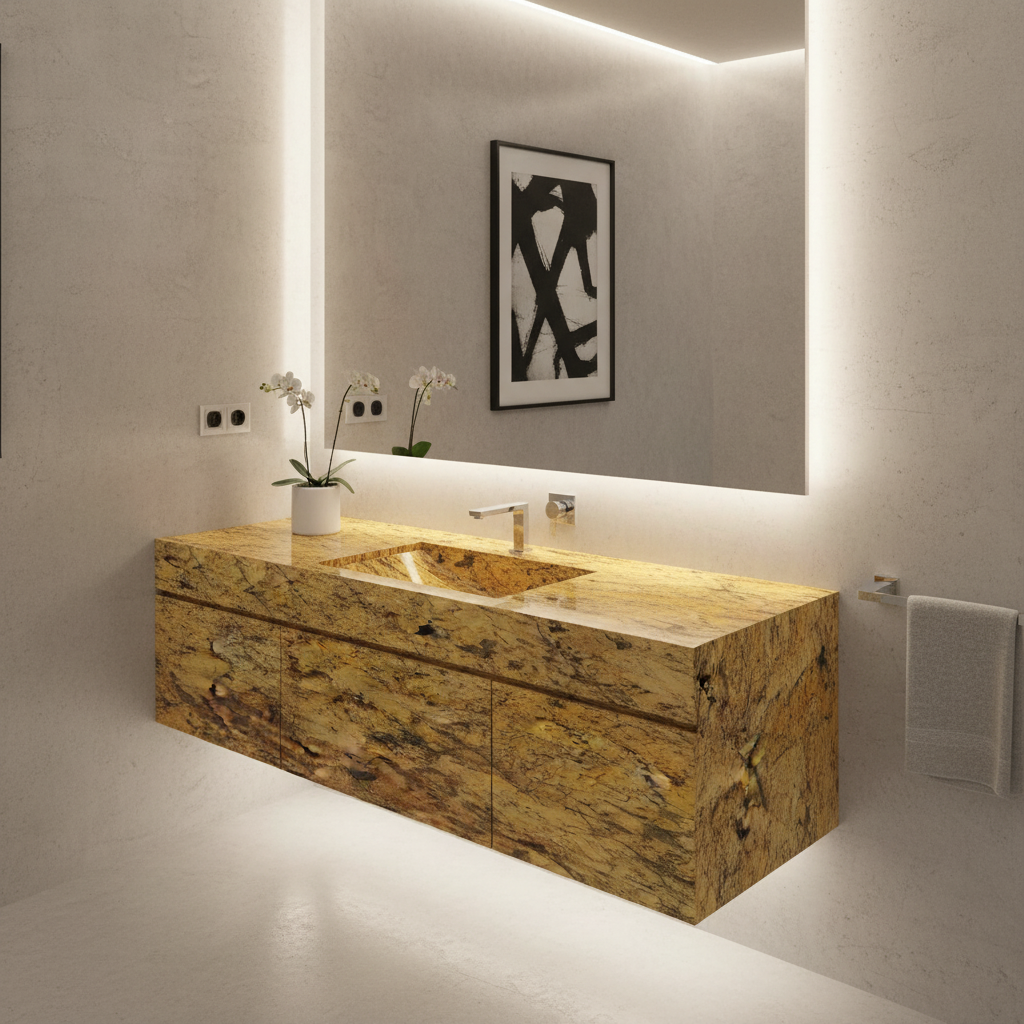Whether you are designing a modern kitchen, a luxurious bathroom, or a commercial space, Alaska Gold Granite is the perfect choice to combine durability with sophistication. Transform your spaces with its timeless elegance and unmatched quality.