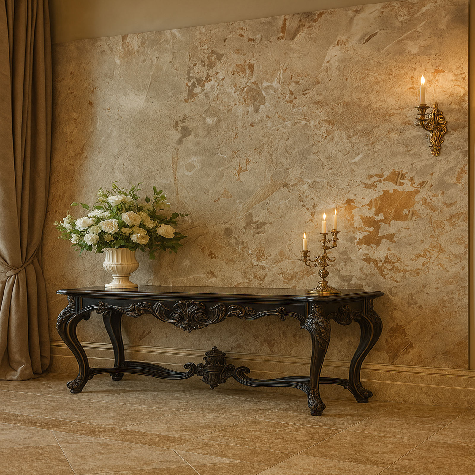 Elegant Italian Texture: Warm beige tones with graceful brown waves add depth and sophistication to interiors.