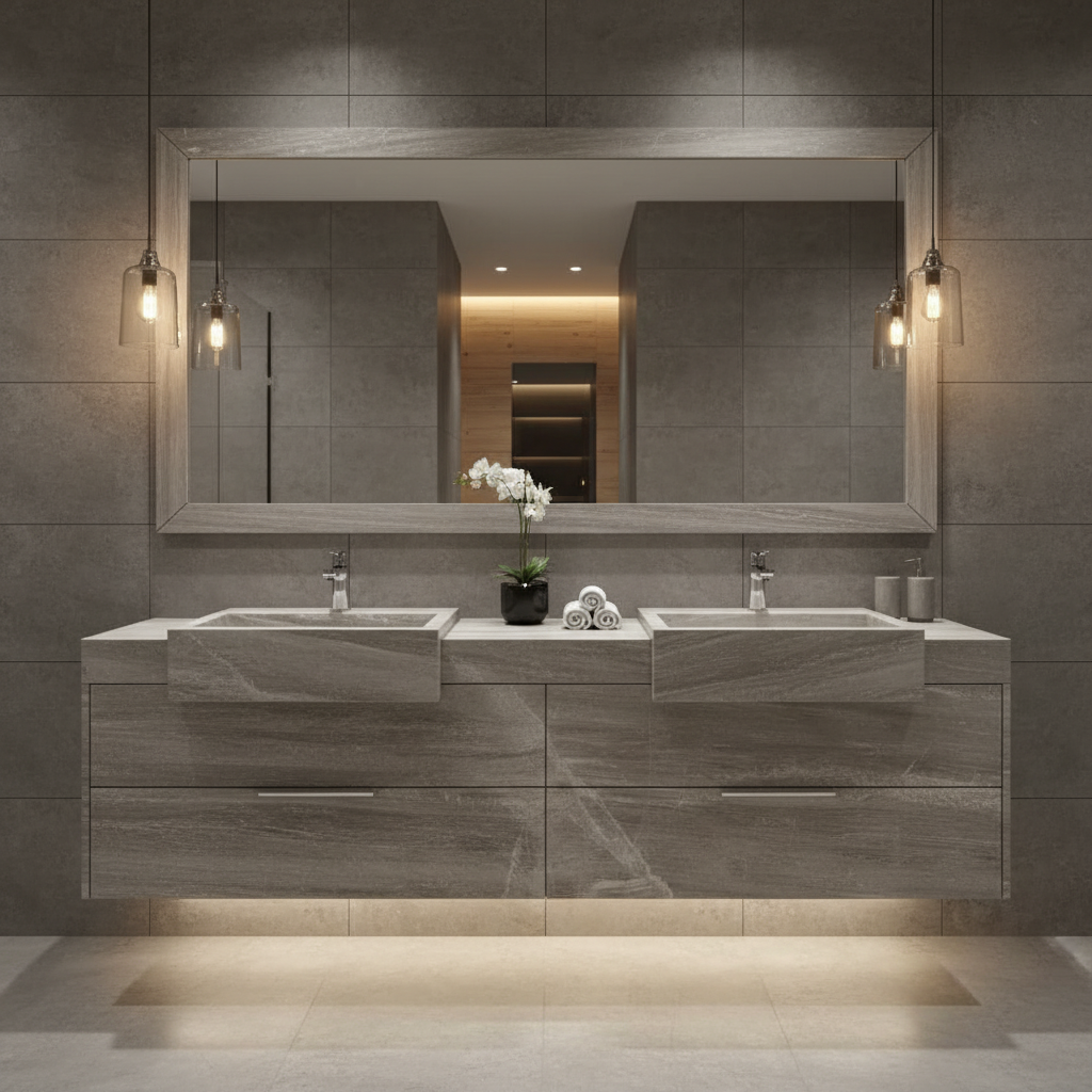Bathroom Vanities & Countertops: Combines luxury and practicality with stain resistance.