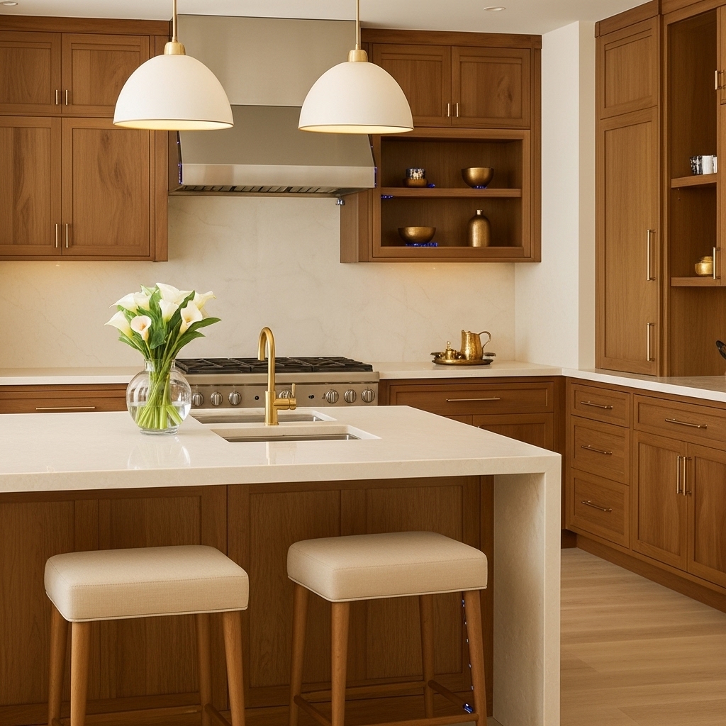 Kitchen Countertops: Suitable for premium kitchen designs with a soft, warm tone.